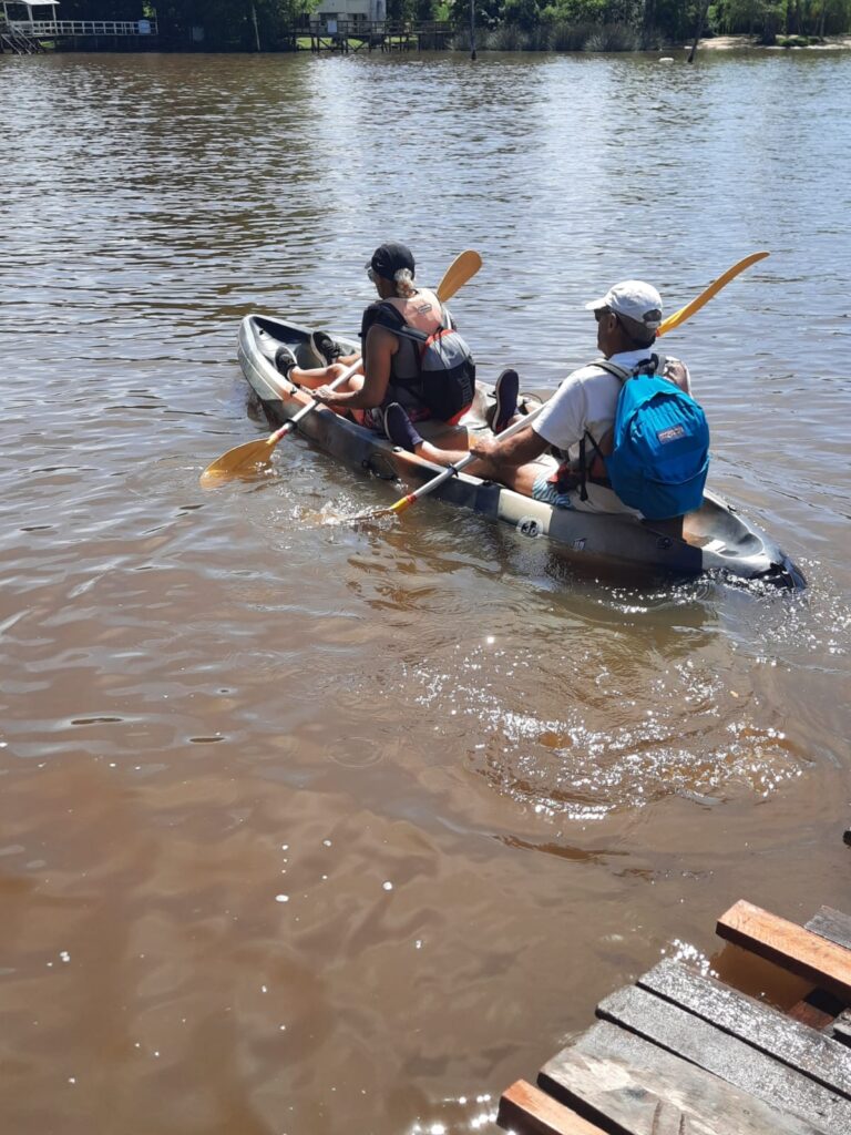 El domingo 7 de enero pudimos finalmente llevar adelante la experiencia fullday en el Delta de Tigre. La jornada comenzó con sol a pleno y rio planchado, condiciones ideales para navegarlo!. Después de una pequeña instrucción de kayak, tiramos los botes al agua y nos dispusimos a remar por el delta.