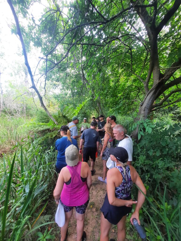 Se disfrutó un montón de la remada y muchos ciclistas de CDH afirmaron en ese momento que andar en kayak no es lo mismo que pedalear en dos ruedas jaja. El pollo como siempre no pude dejar de hacer sus maldades y fue mojando de a poco a todo el grupo.. no vino mal con el calor que hacia. Finalmente arribamos al parador isleño «La Morada» donde almorzamos juntos y luego hicimos una caminata lúdica por la única reserva natural protegida existente en el delta: Monte Blanco.